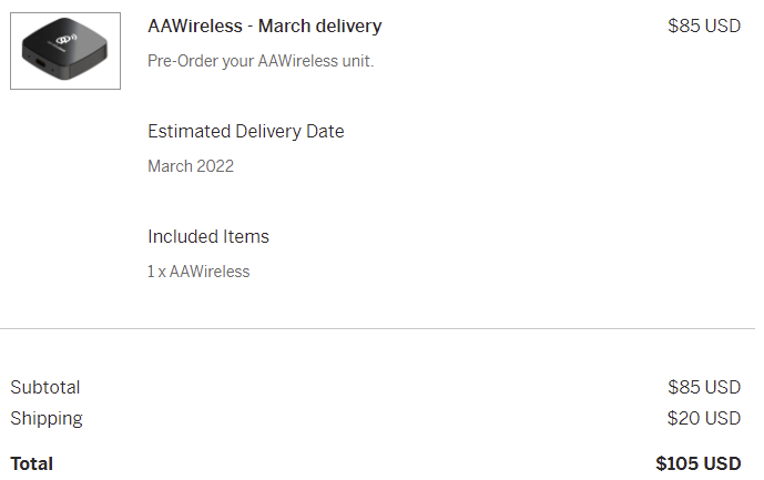 인디고에서 배송비 포함 105$ 에 주문한 AAWireless.