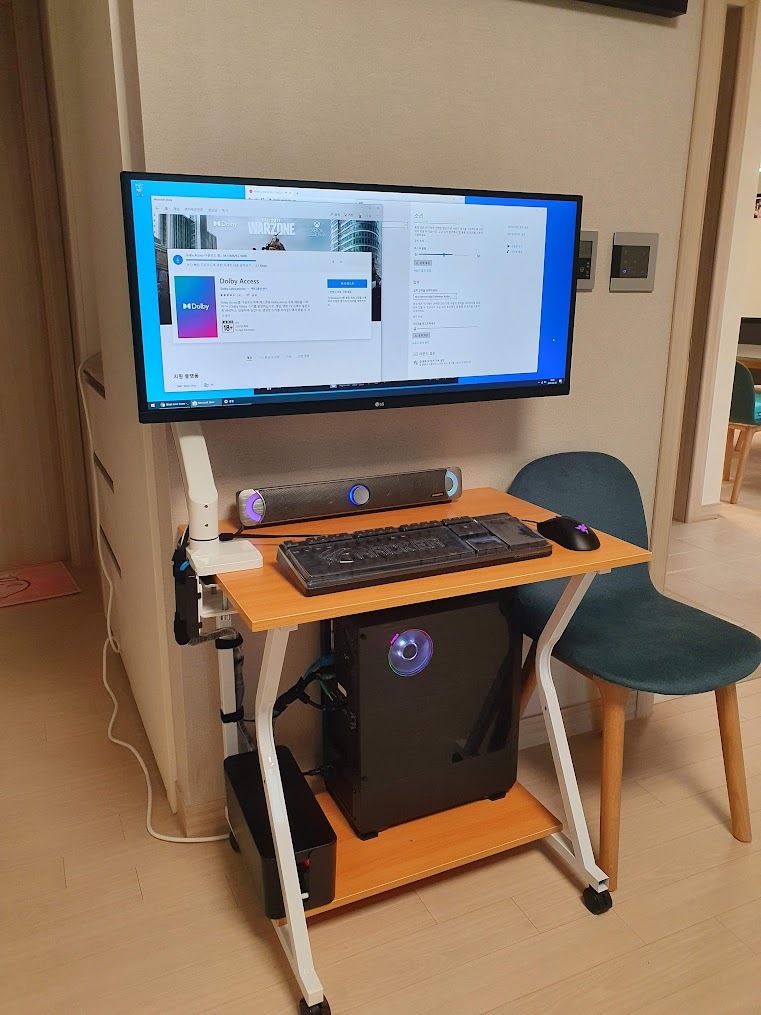 티비 스탠드에 모니터를 설치하고 거실에 티비를 설치하기 전까지 쓰려고 합니다.