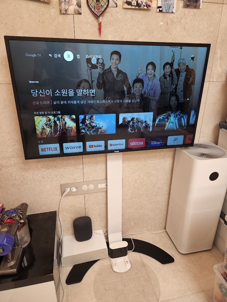 거실에 모니터를 설치해 티비처럼 보기 위함이죠.