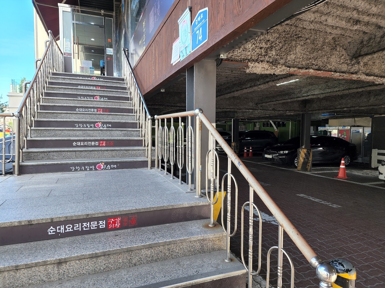 계단을 따라 2층으로 올라가 입구로 들어갑니다.