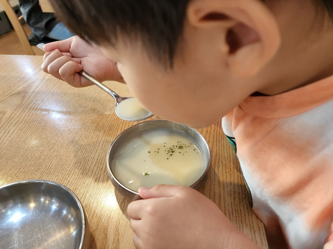 키즈 카페에서 체력을 최대로 방전하고 온 상태라 허기지나 봐요.
