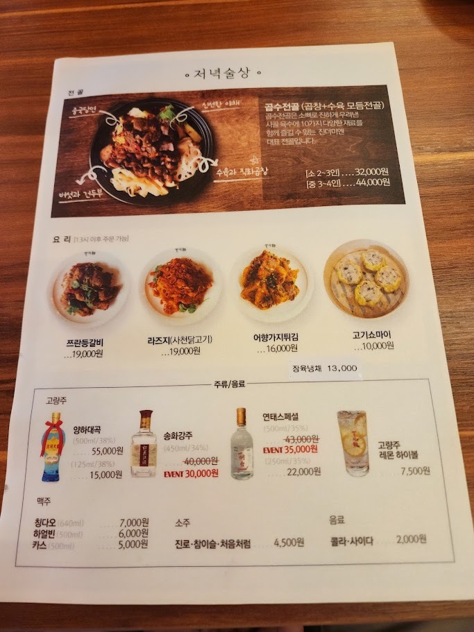 저녁 메뉴에는 안주에 괜찮은 음식들이 있습니다.