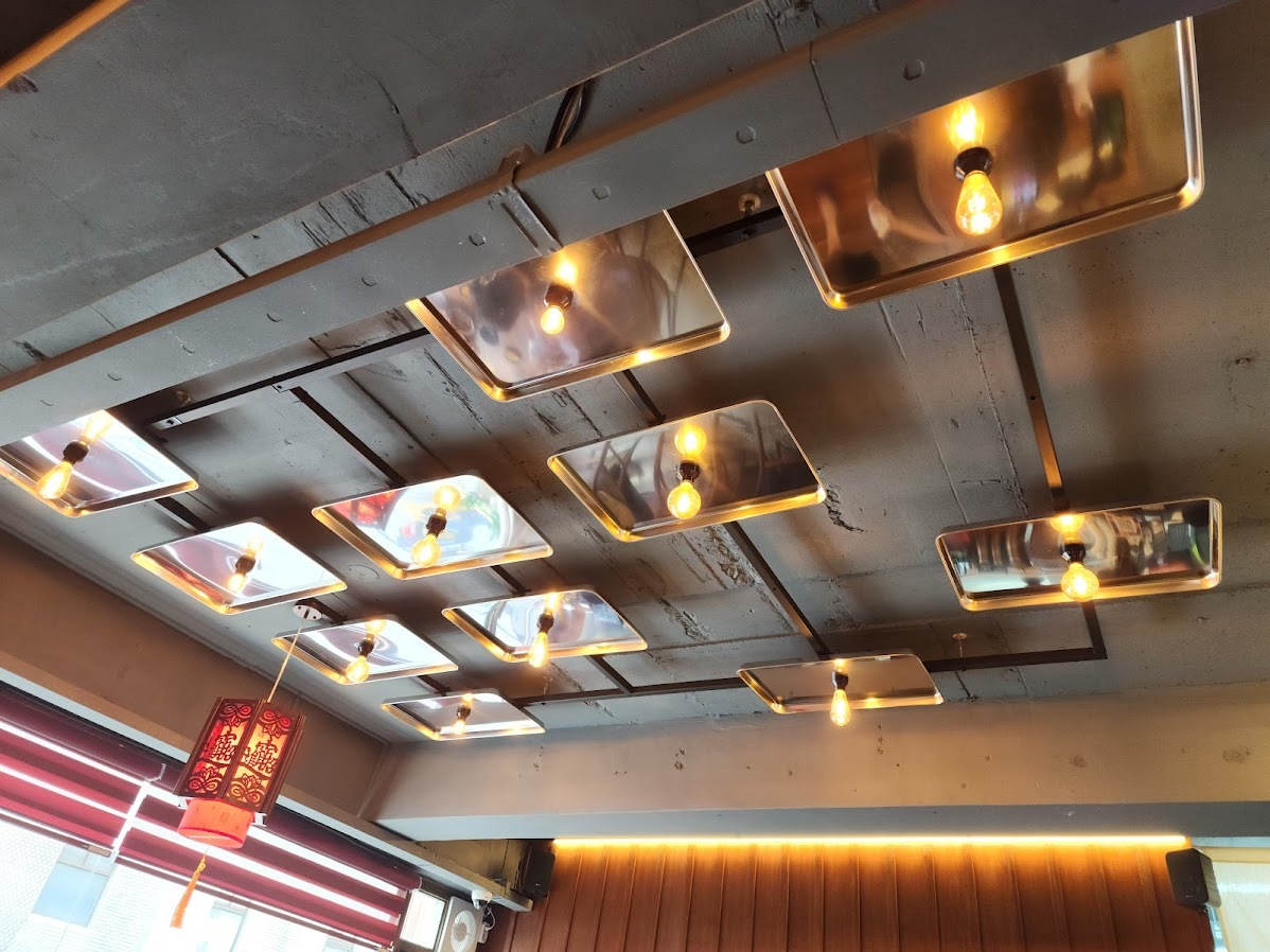 재미있는 천장 인테리어를 보며 식사를 기다립니다.