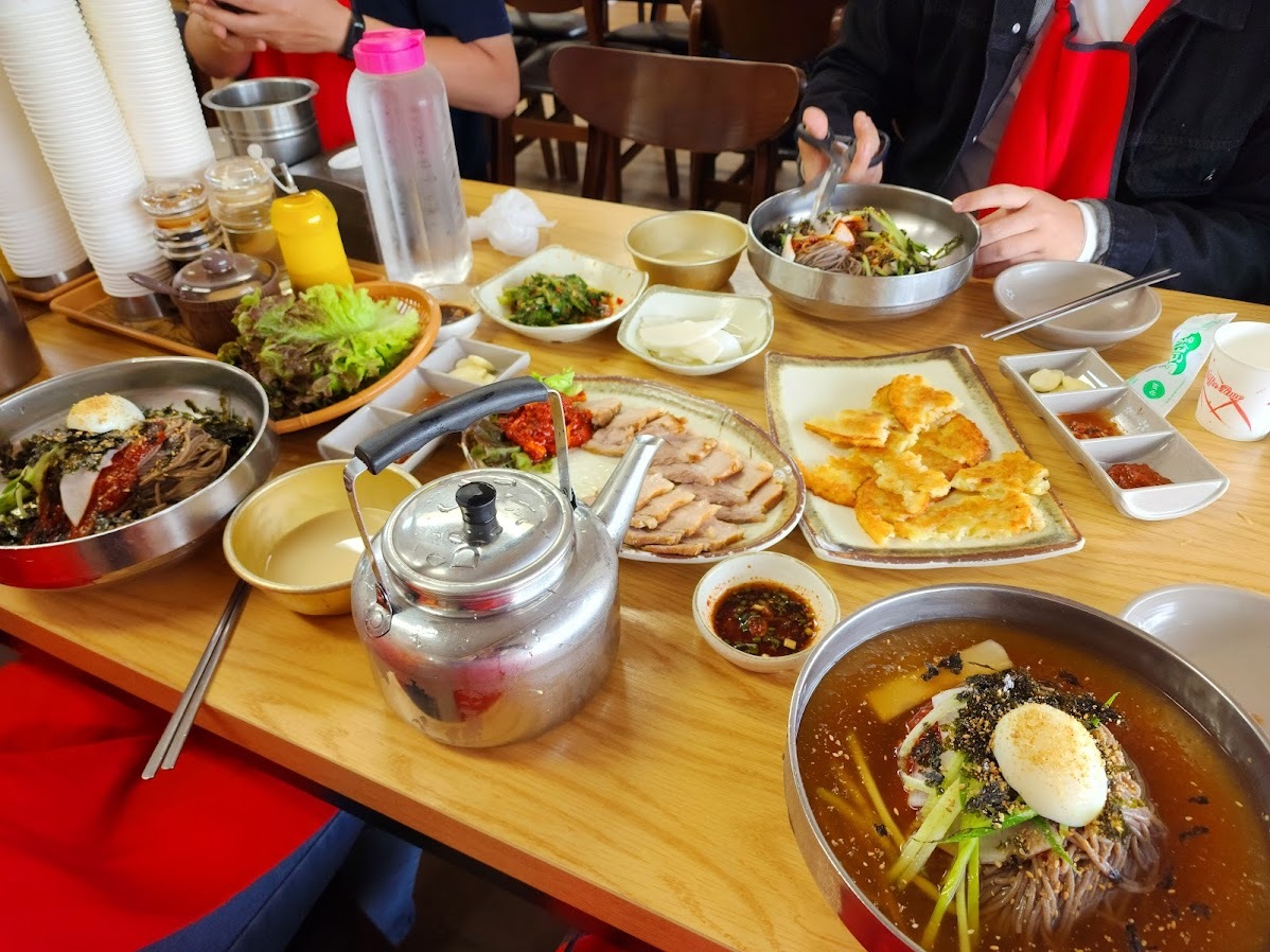 일단 근처 식당에 모여 점심을 먹고 들어가기로 합니다.