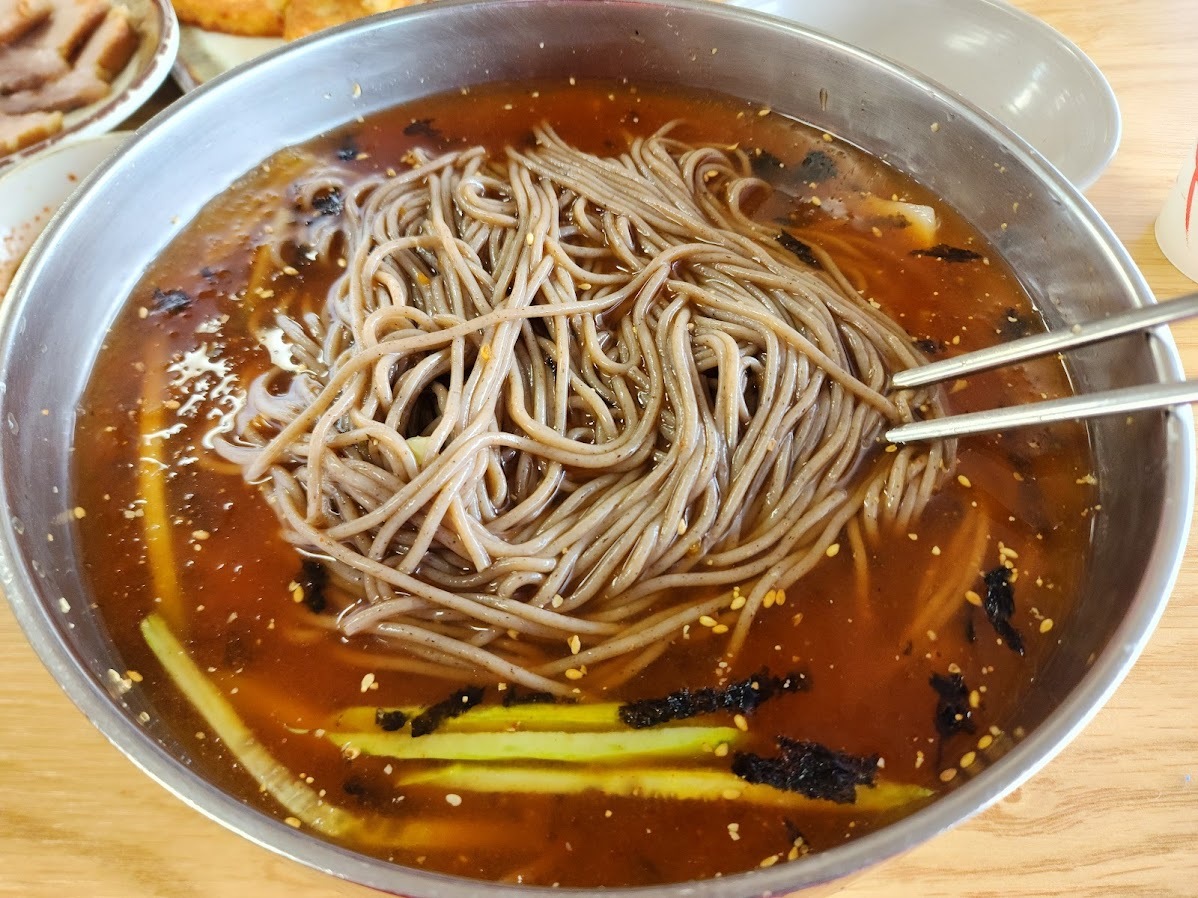 식사로 주문한 메밀 막국수가 나왔습니다.