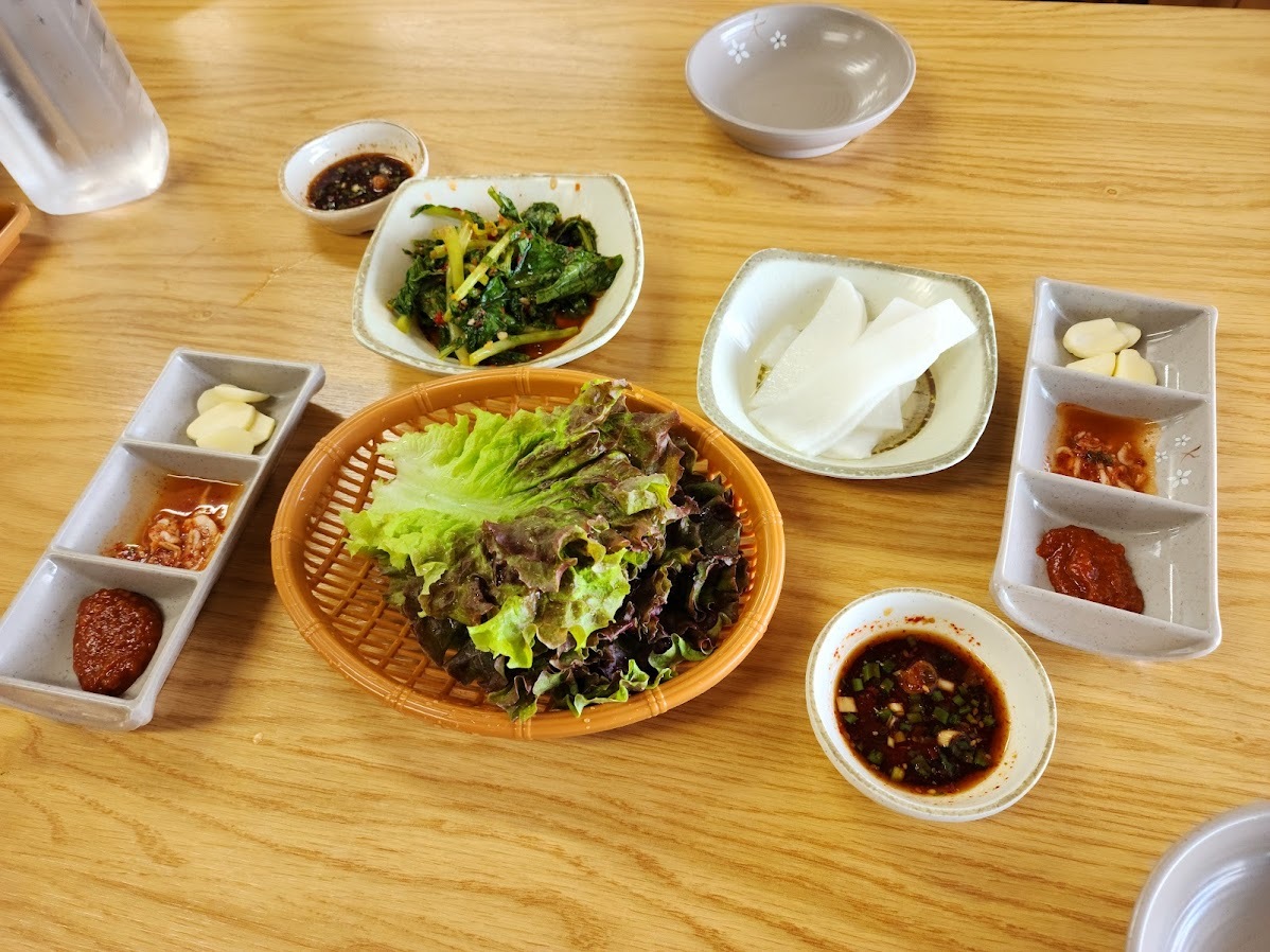 한국인 특: 반찬을 중앙에 놓았다가 메인 메뉴가 나오면 반찬을 옮긴다.