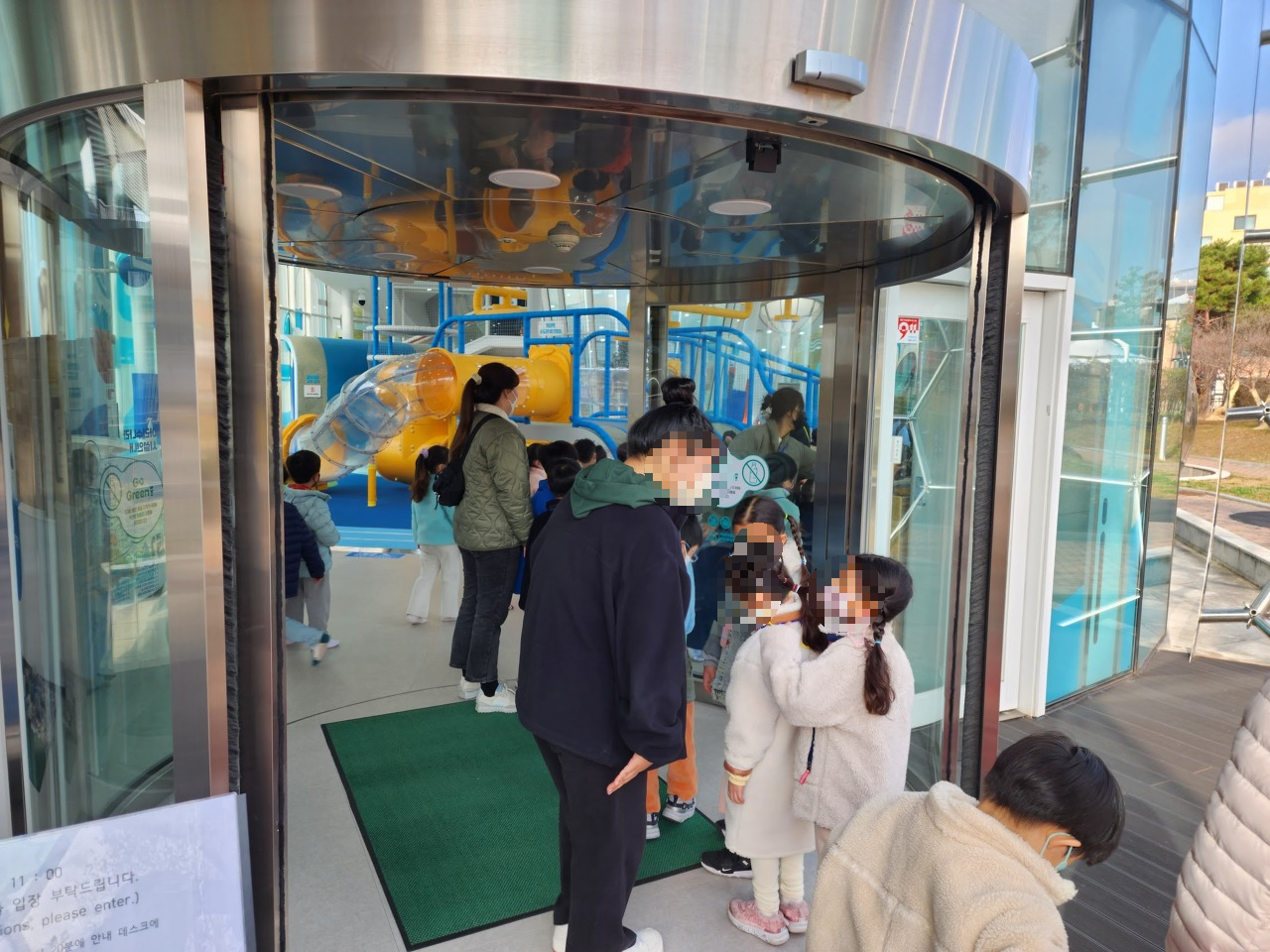 유치원 정도 되어 보이는 아이들과 교사로 보이시는 분들이 줄지어 입장 중이군요.