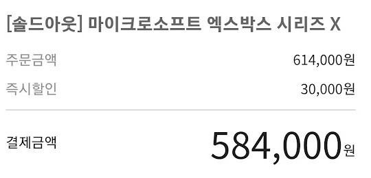 정가보다 미묘하게 싼 584,000 원이 머리에 그려지자 무지성으로 구입 버튼을 눌렀어요.