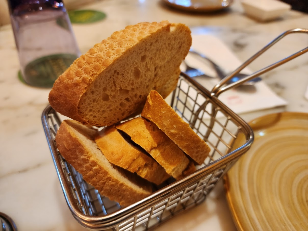 식전 빵과 하몽과 멜론, 타파스 4개, 메인 메뉴 4개.