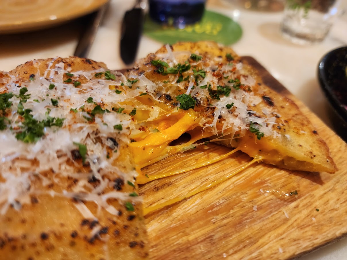 안에 치즈가 들어있고 빵은 쫄깃쫄깃합니다.