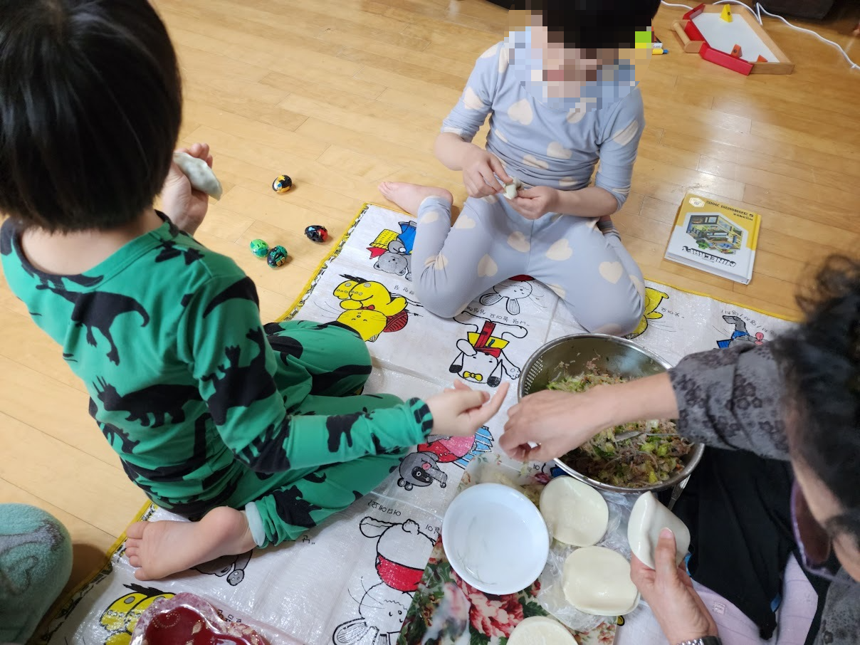 아들 둘과 와이프는 태어나 처음으로 만두들 빚어봅니다.