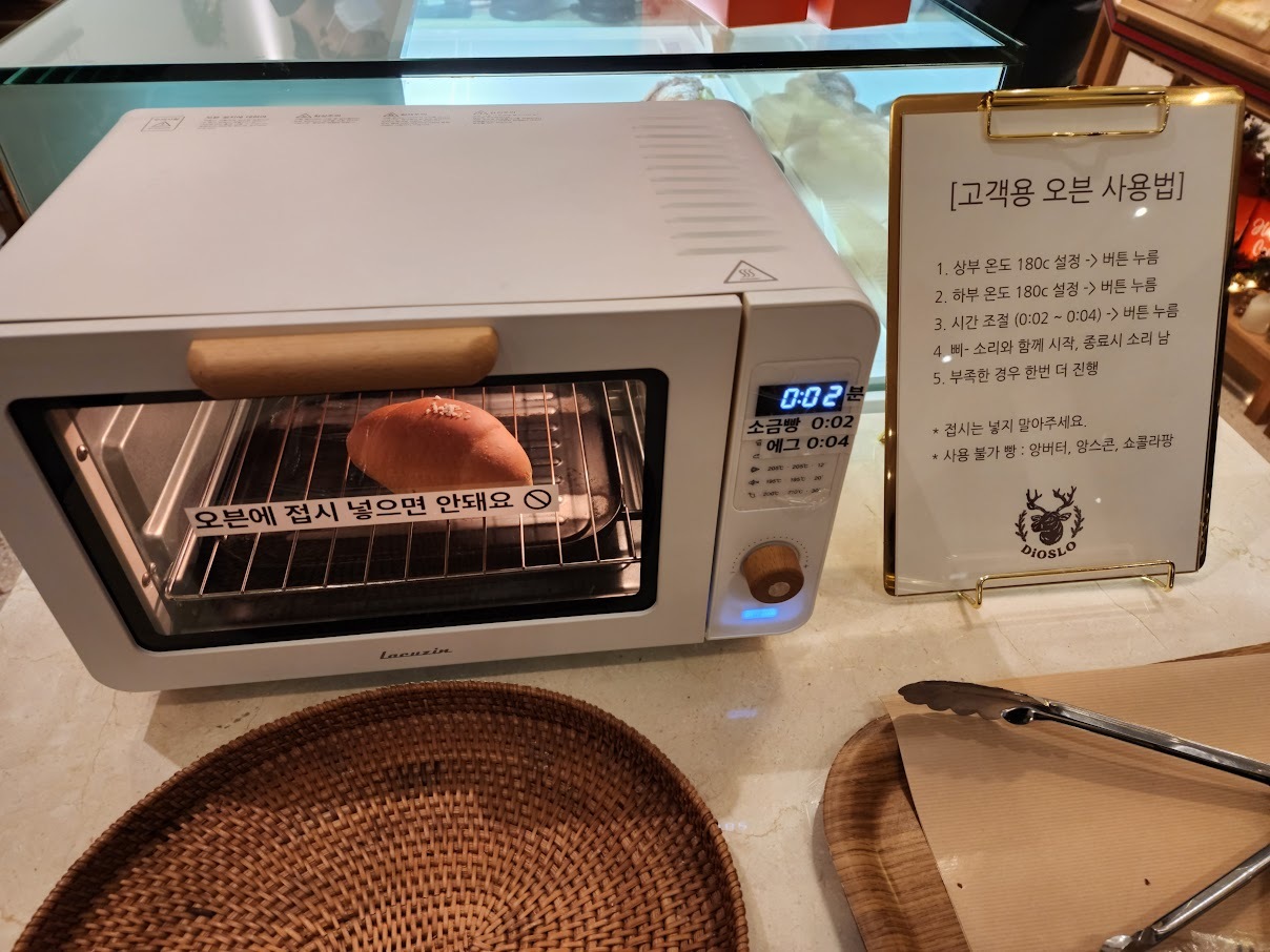 셀프 서비스로 빵을 오븐에 데울 수 있군요.