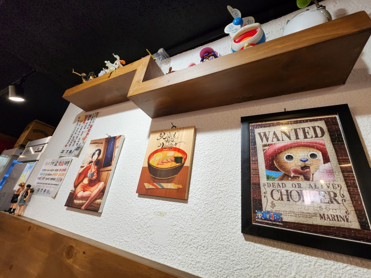 라멘집에 없으면 안 될 것 같은 원피스 관련 물품들 역시나 있군요.