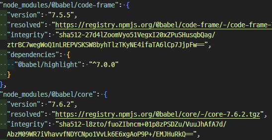 우선 package-lock.json 파일을 열고 어디서 패키지를 가져오는지 확인.