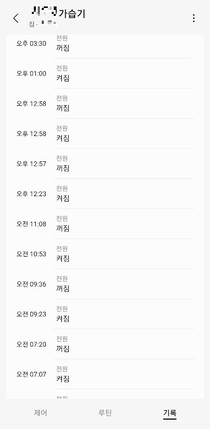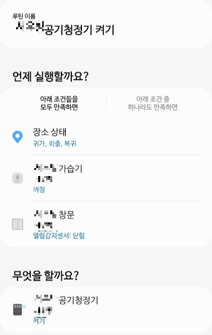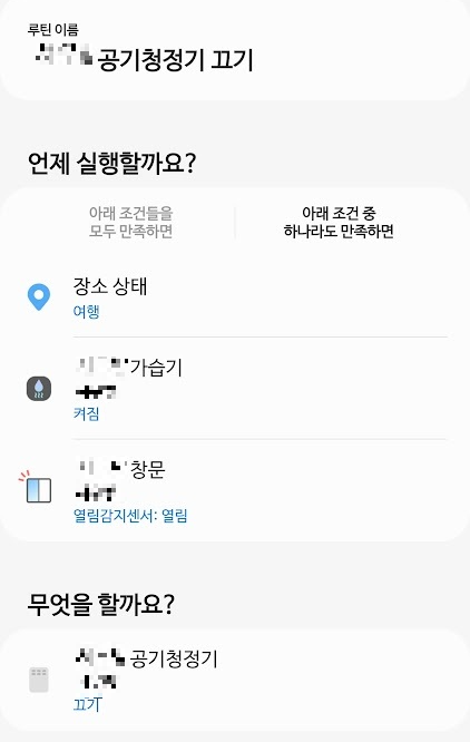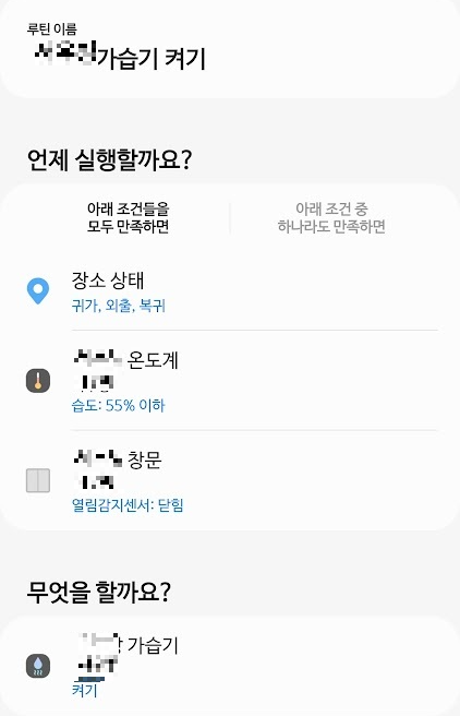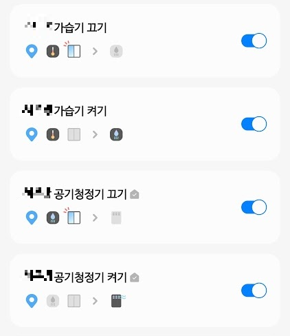 공기청정기 끄기도 비슷하게 가습기가 켜지면 꺼지도록 설정합니다.