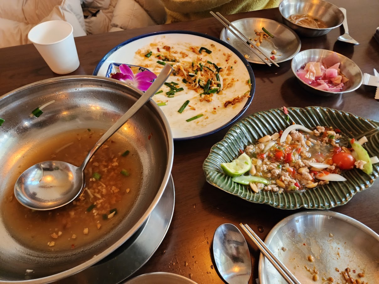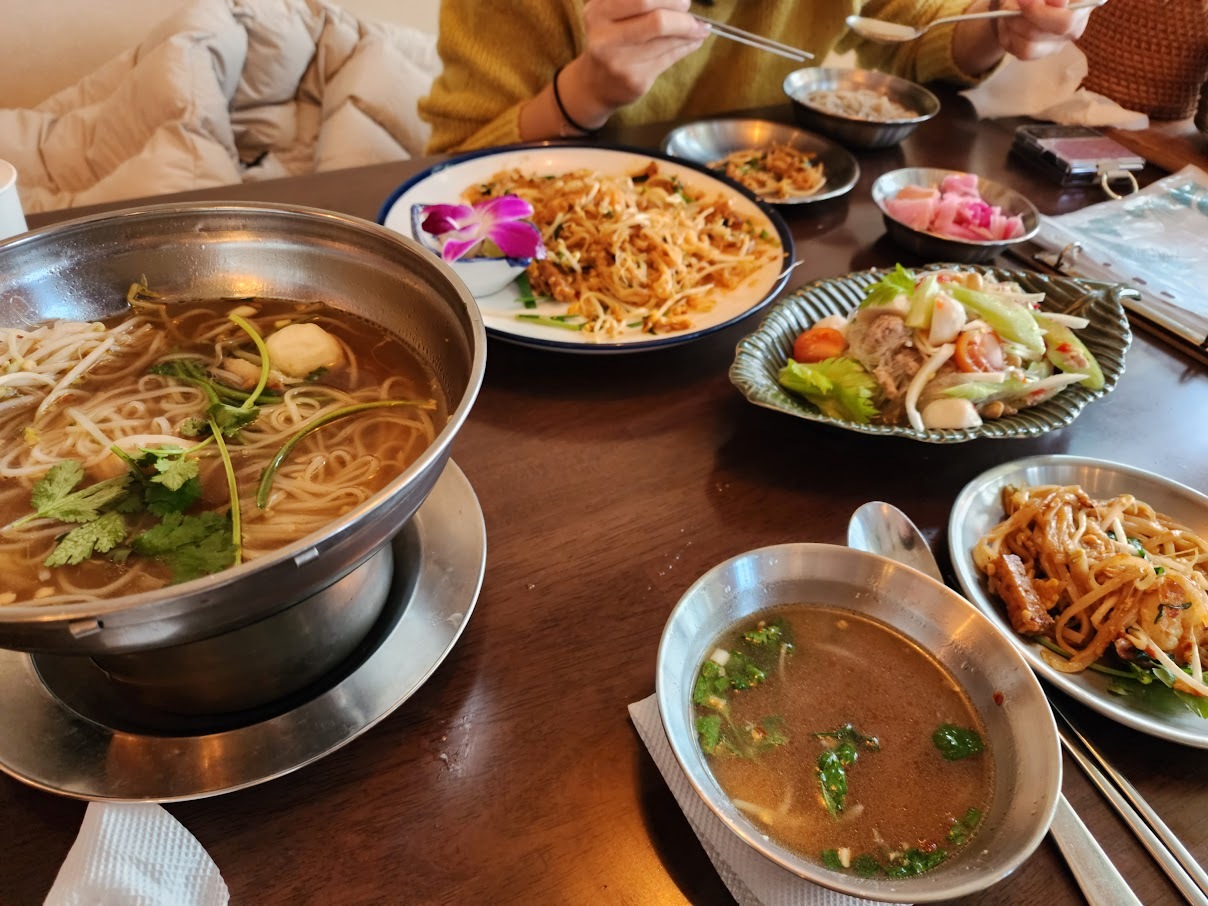여러분은 반 치앙마이 팟타이 꿍 드세요.