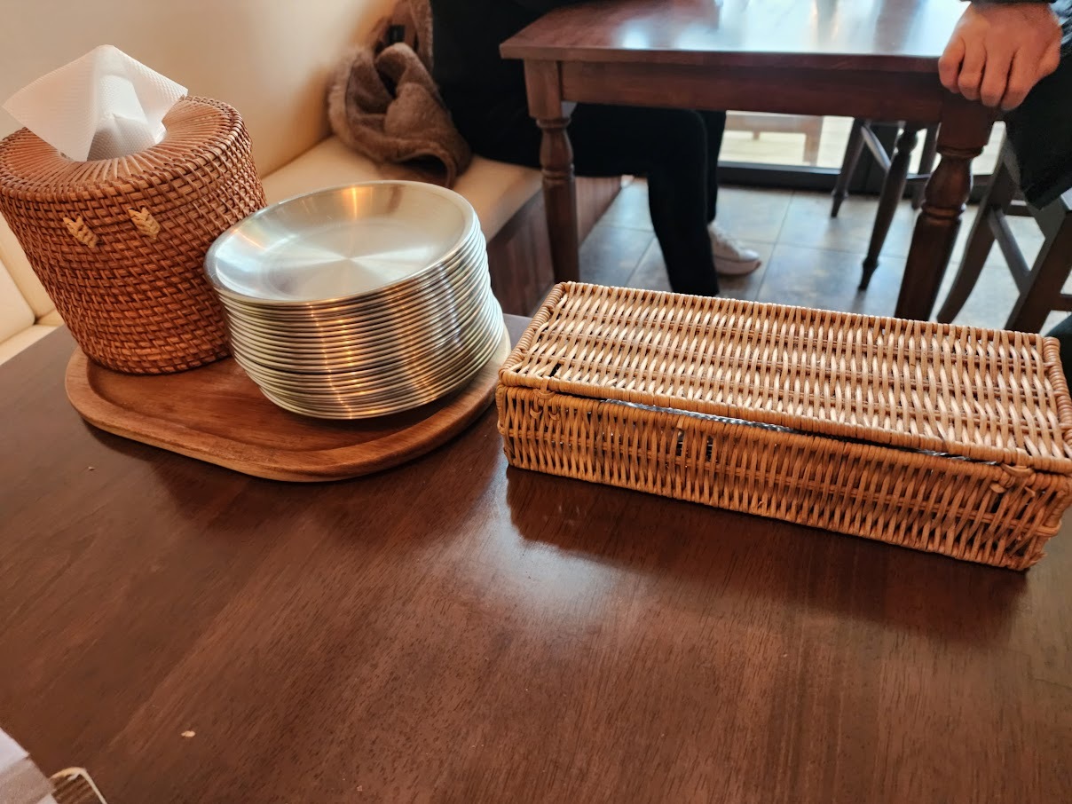 뱅글뱅글 도는 앞접시에는 휴지를 한 장 깔아주면 좋습니다.