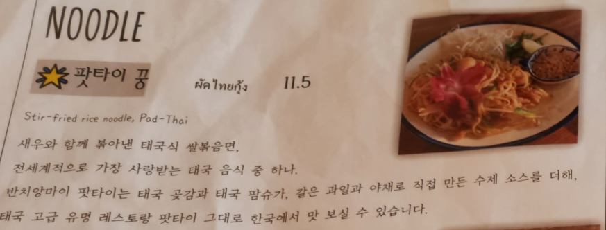 "팟타이 꿍" 도 나왔습니다.
