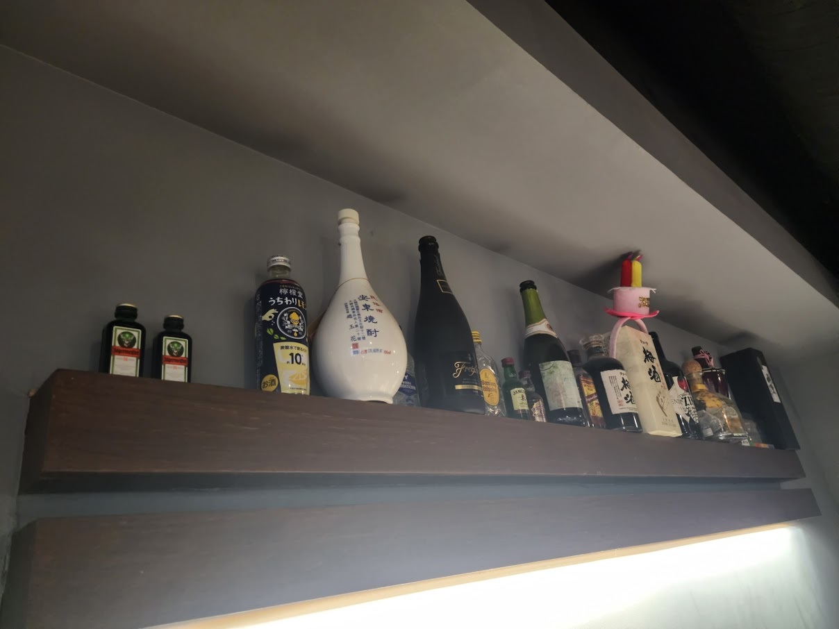장식용(?) 술병의 일본 술 지분이 조금 더 많은 걸로 이곳이 일본 음식점이라는 뉘앙스를 풍겨줍니다만,