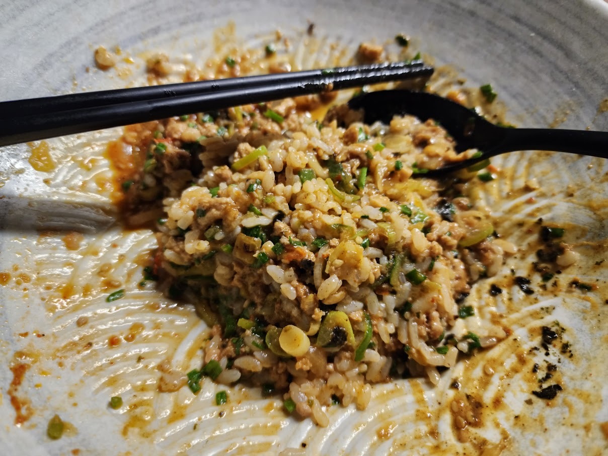 비빔밥과 카오팟 무쌉의 중간쯤 그 어딘가 느낌이에요.
