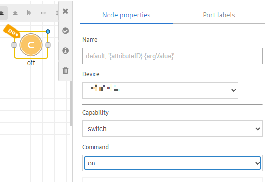 디바이스를 고르고 Capability 를 switch 로 Command 를 on 으로 변경해 주면 됩니다.