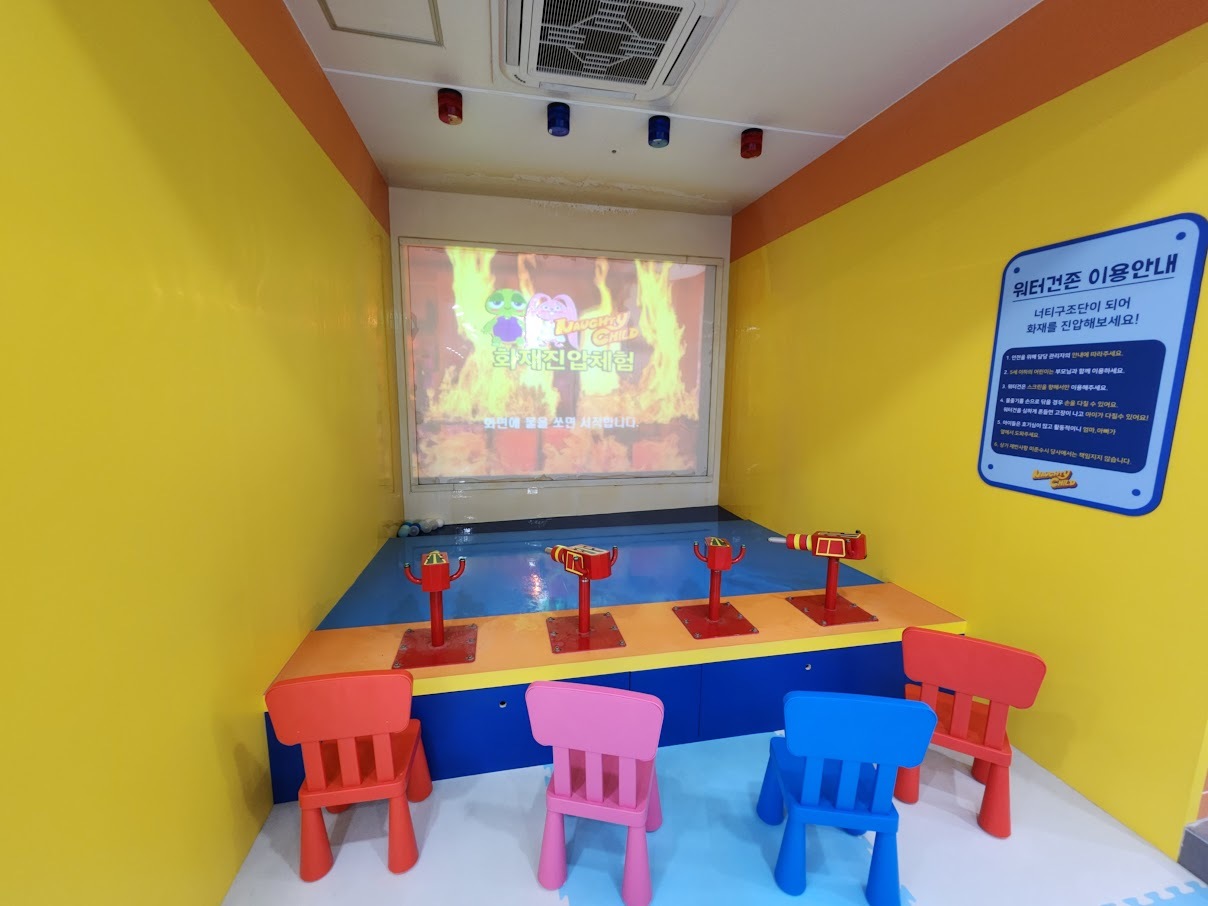 마지막으로 워터 건으로 불 끄기 놀이 좀 하다가