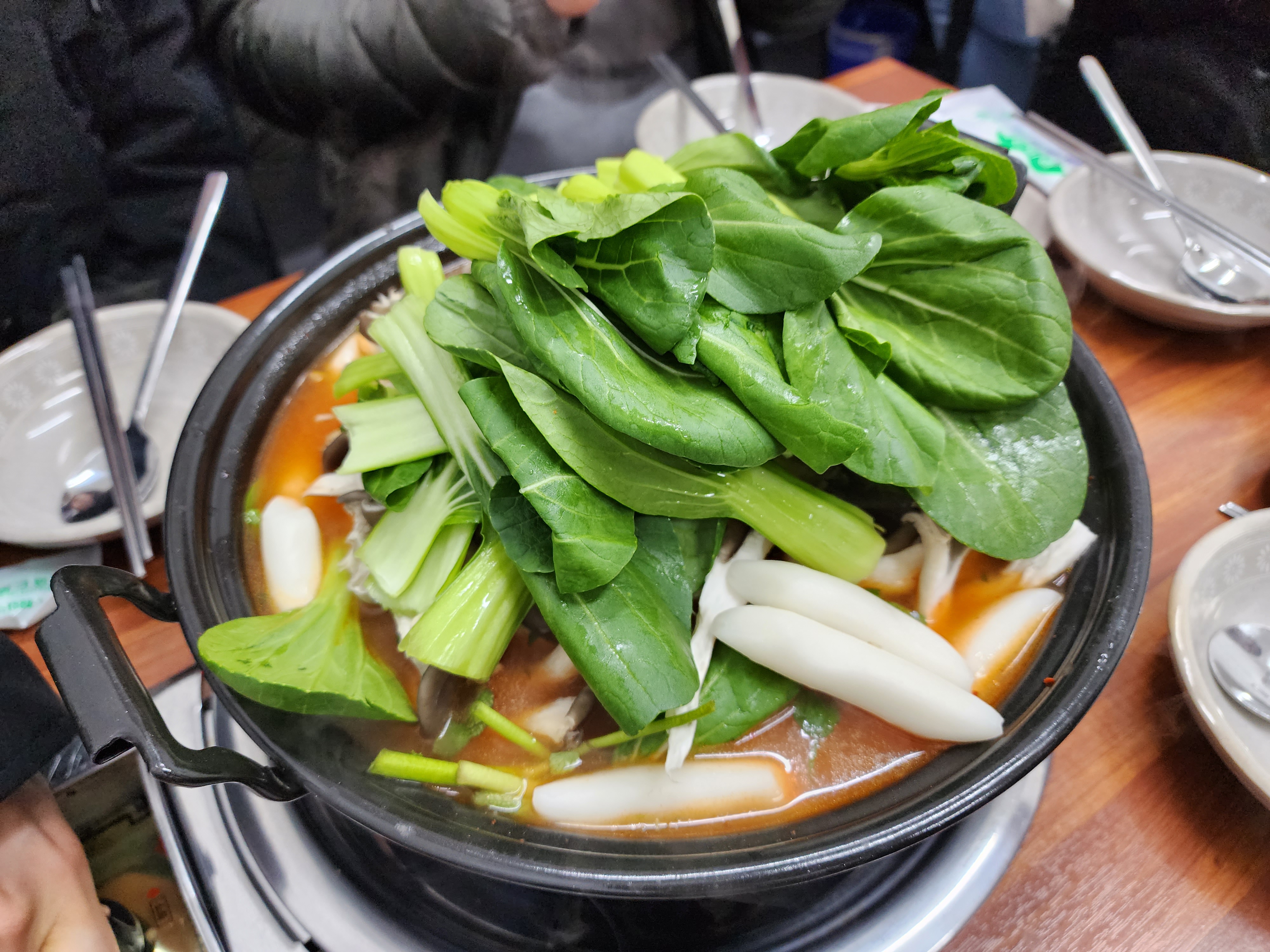 넘치도록 쌓아준 야채를 숨이 죽을 때까지 육수를 살살 끼얹으며 인고의 시간을 감내합니다.