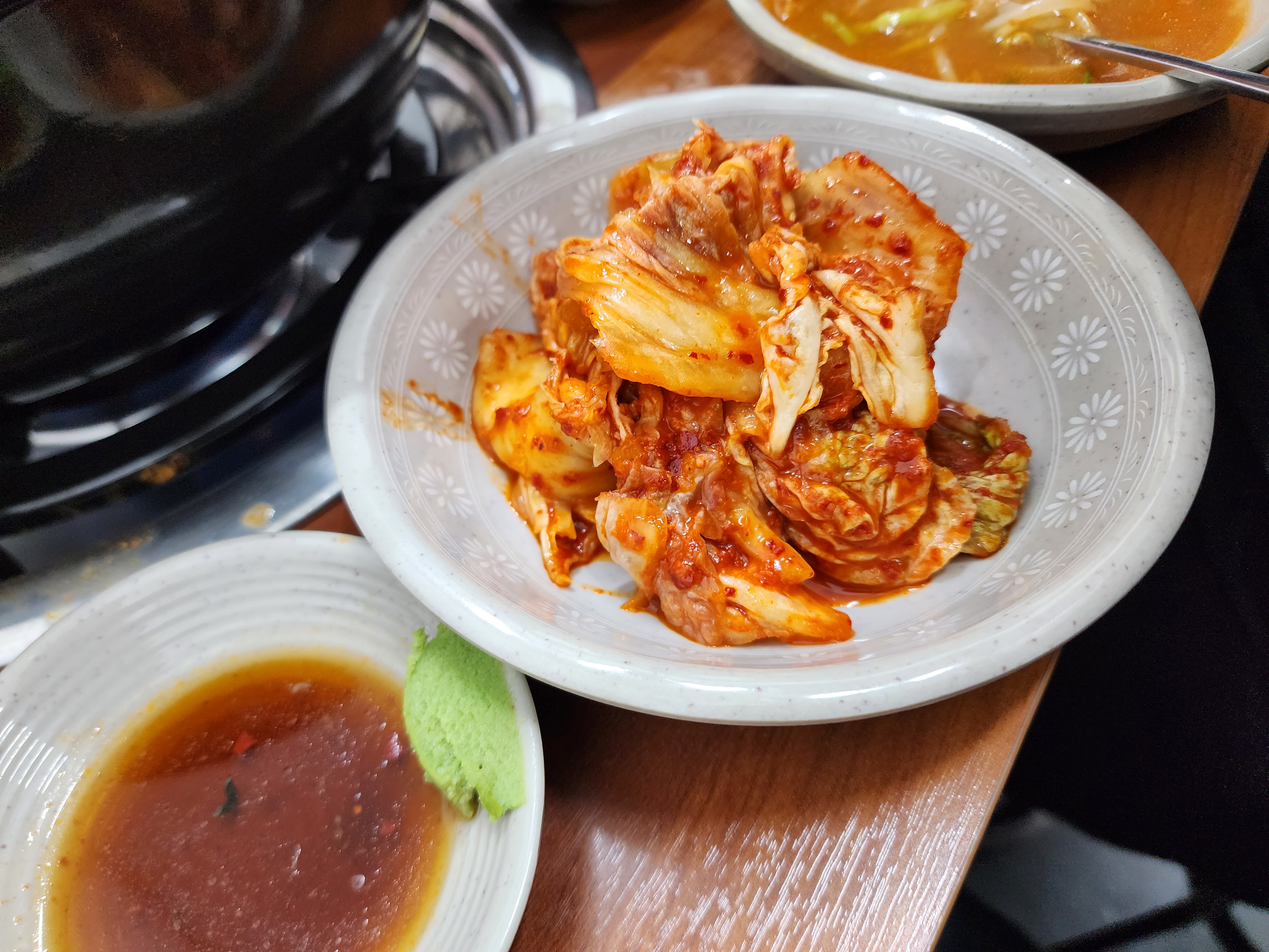 왜인지 모르겠지만 한창 샤브를 먹고 있을 때 주신 김치.