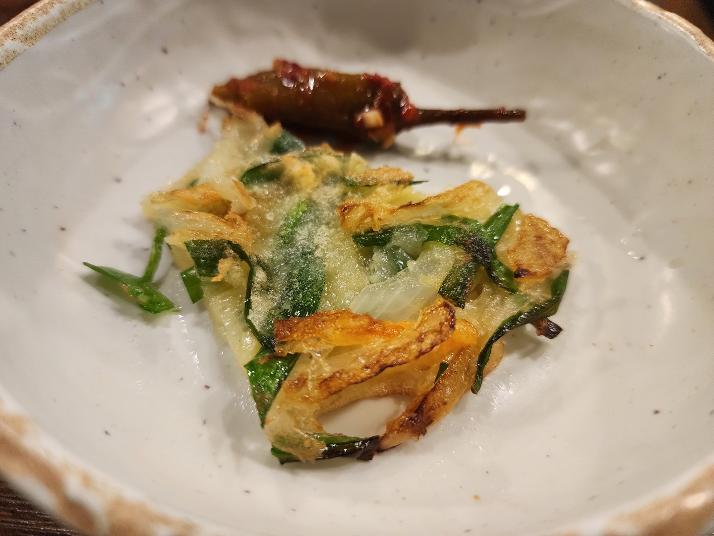 부추전과 고추 짱아찌를 함께 드셔보세요.