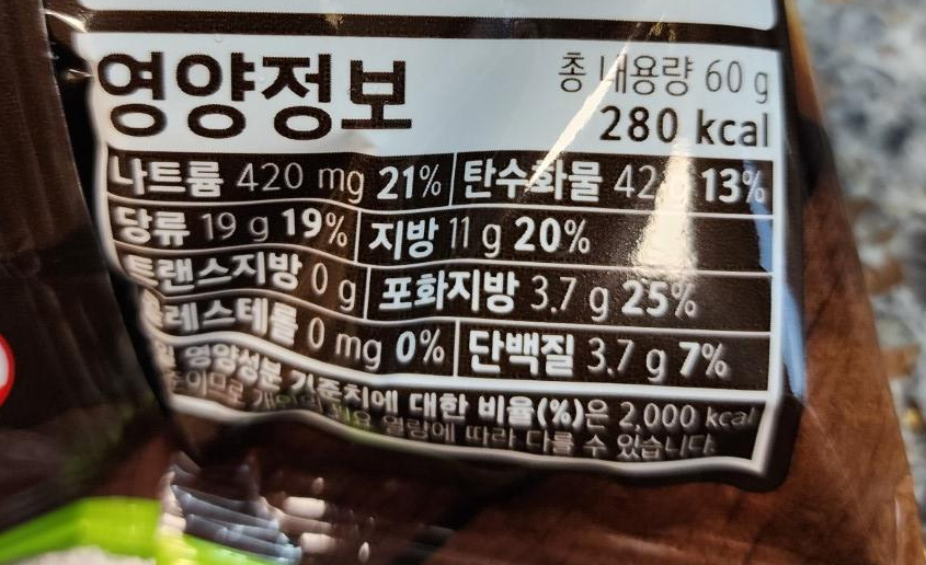 아무 의미 없지만 왠지 블로그 포스팅이라면 있어야 할 듯 한 영양정보.