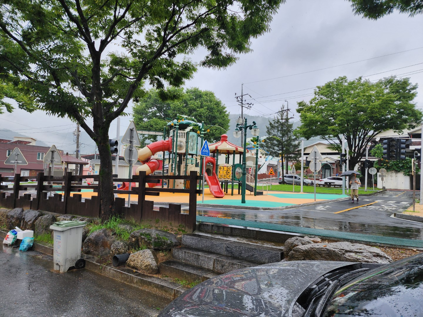 저희는 뒤쪽 주택가 놀이터 근처에 차를 세웠습니다.