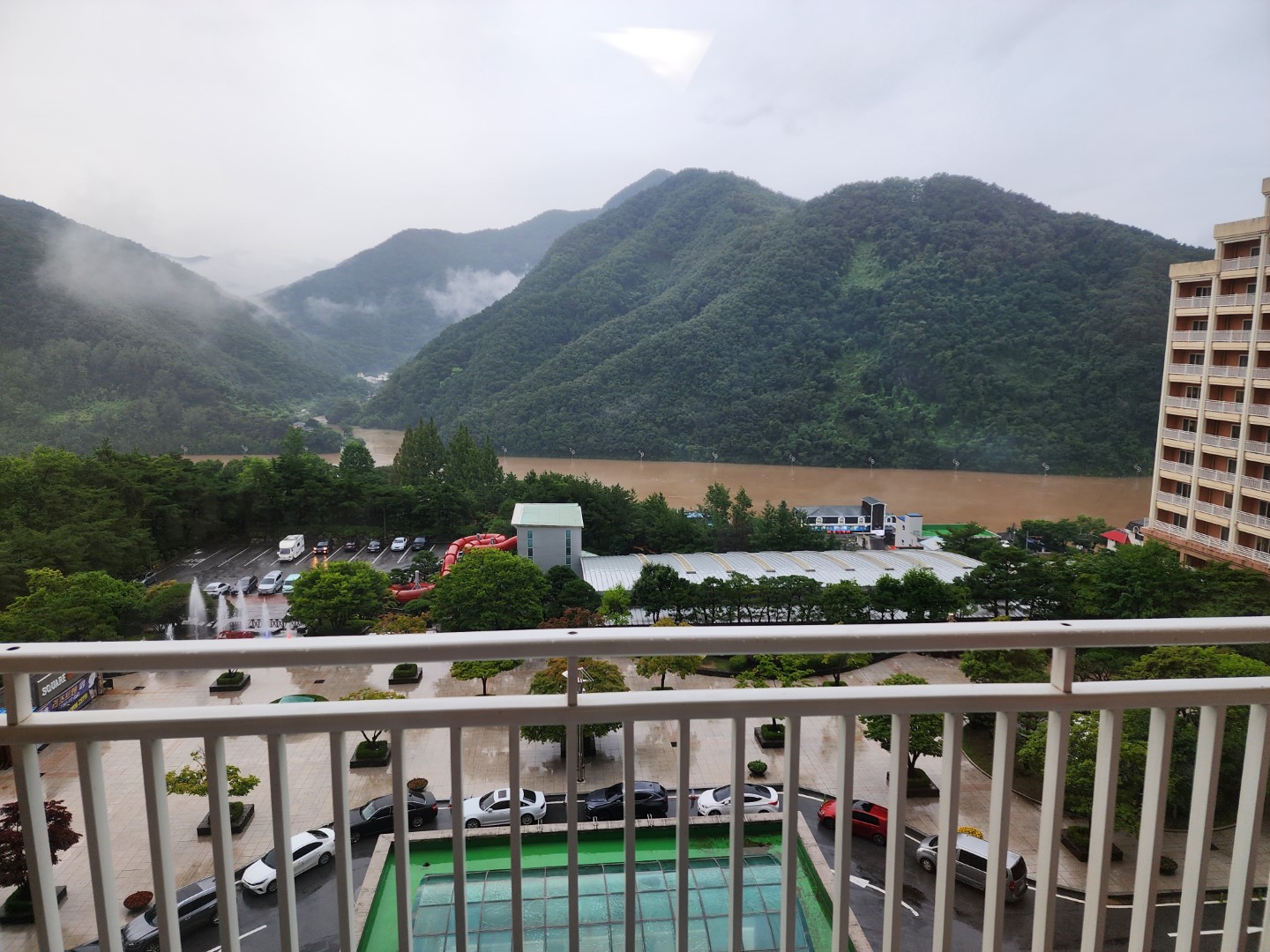 2만 2천원을 추가한 경치는 호우 경보 남한강 뷰입니다.