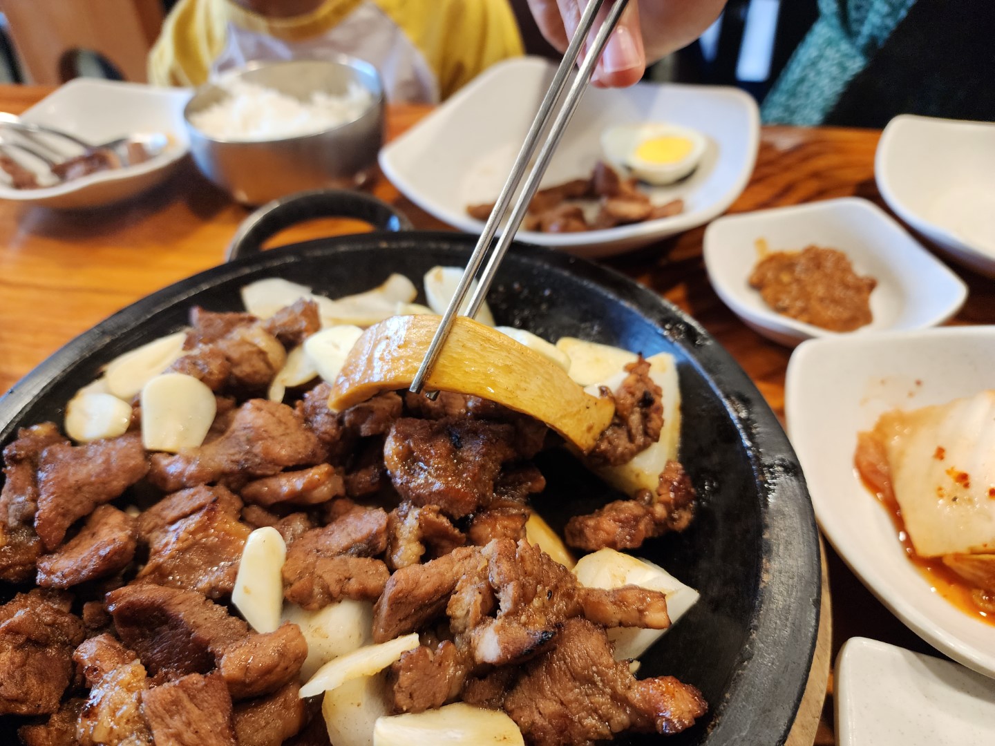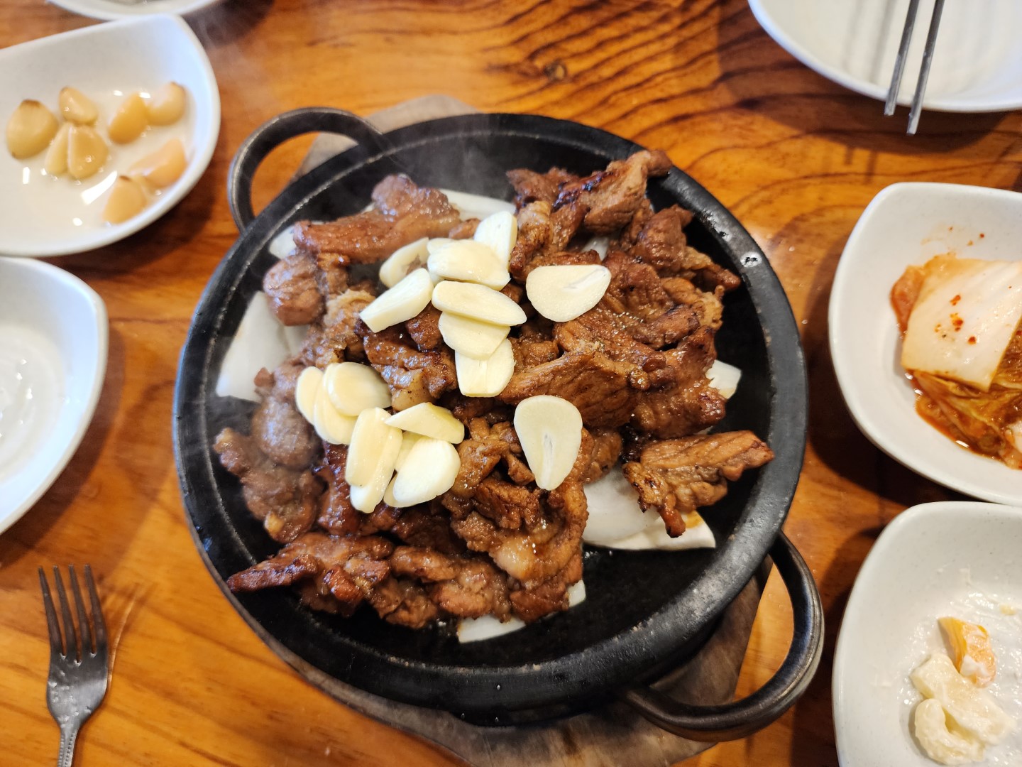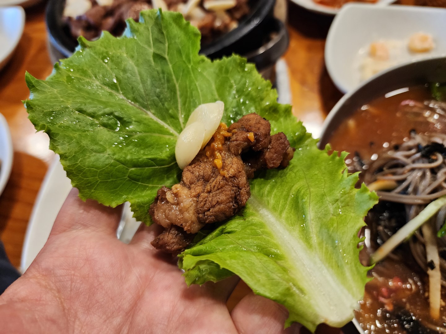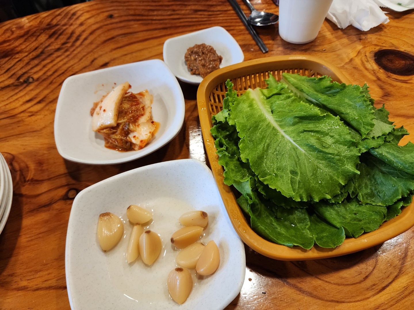 상추와 김치, 그리고 대망의 마늘.