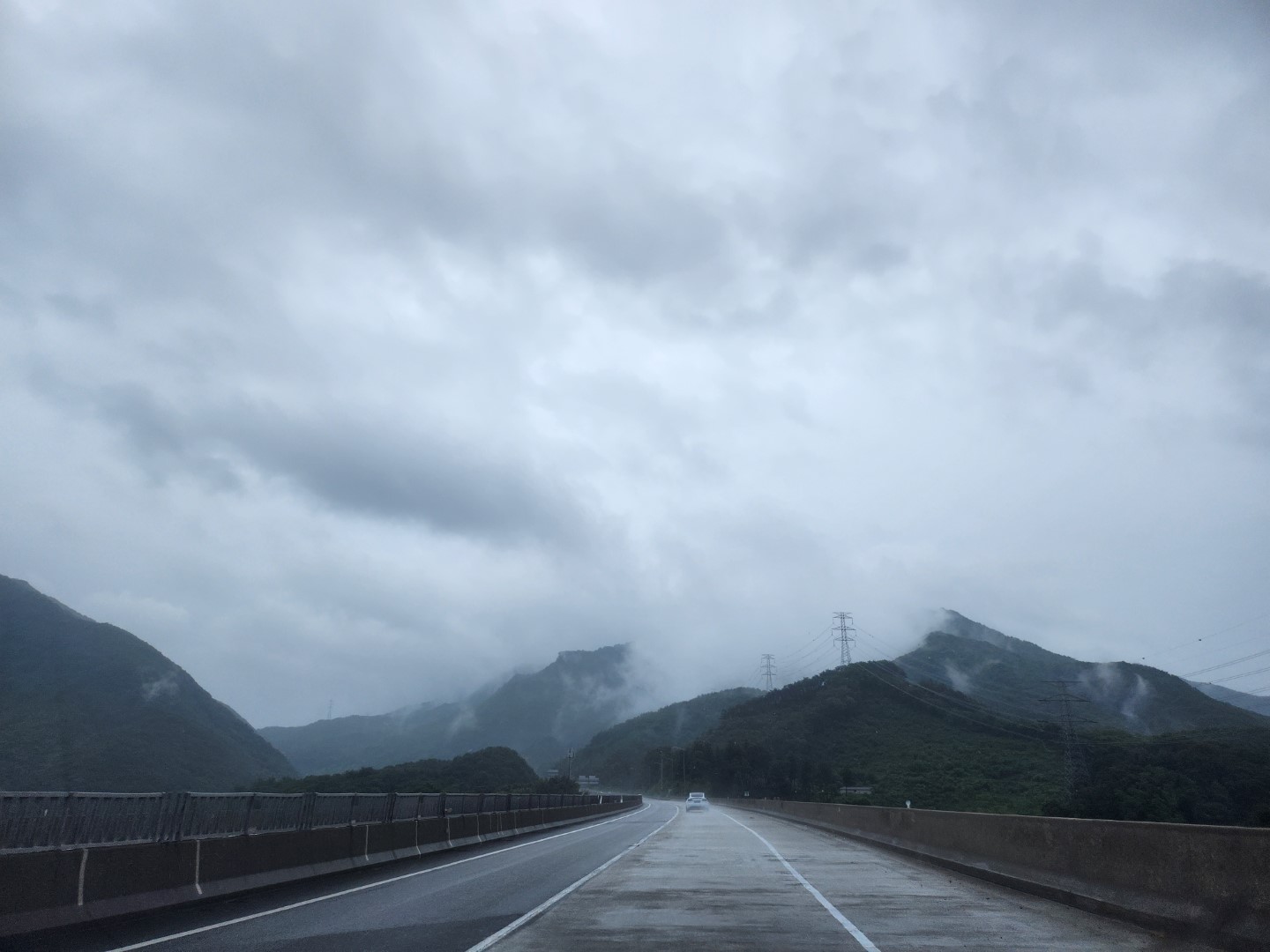 서울은 비가 안 왔는데 중앙 고속도로를 달리는 와중 비가 쏟아집니다.