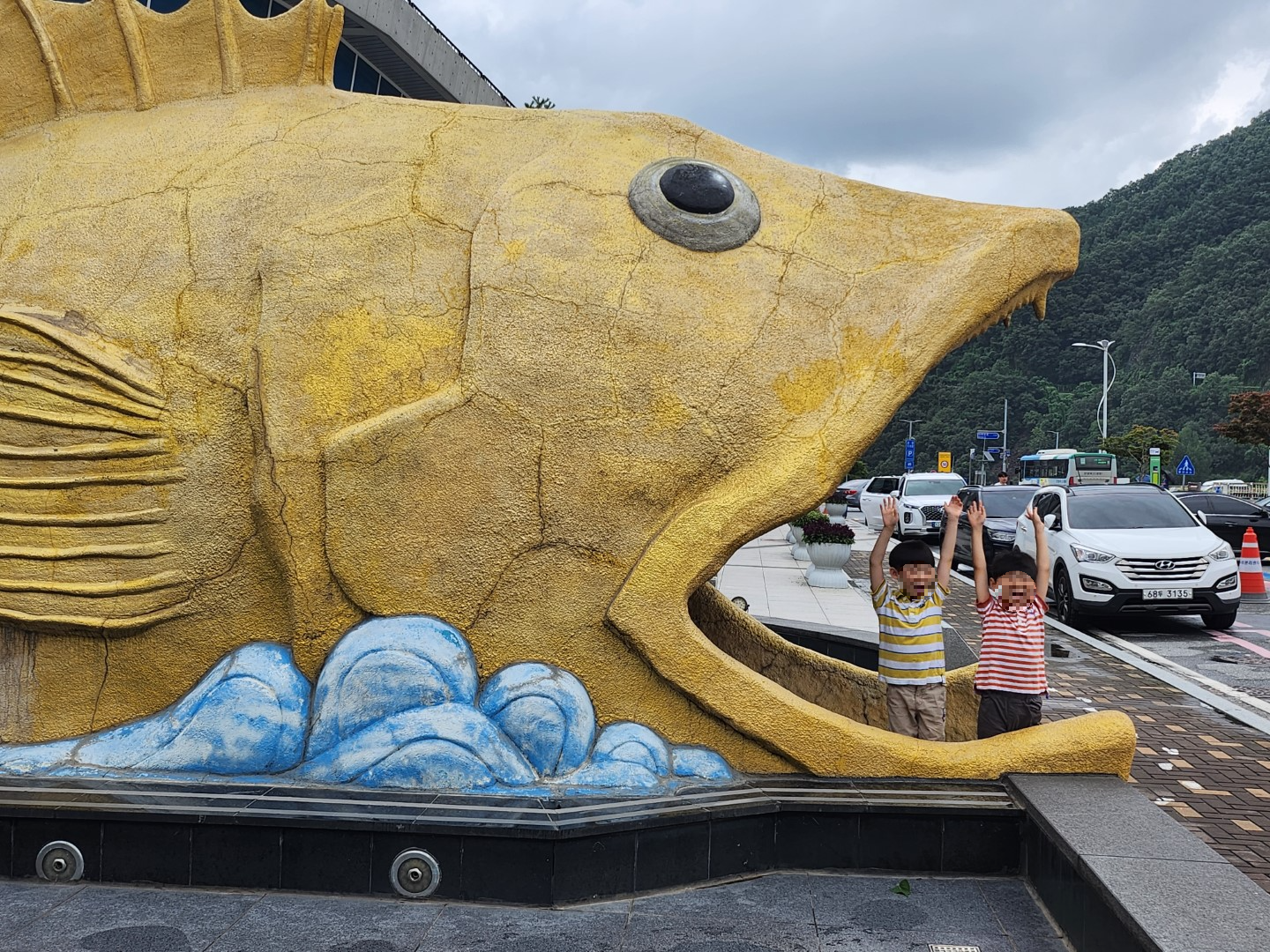 정문 앞에 대형 쏘가리가 있기 때문이죠.