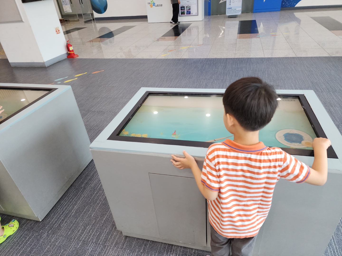 바닥에 그려진 알록달록 쏘가리로 추정되는 물고기를 따라가면 입구가 나옵니다.