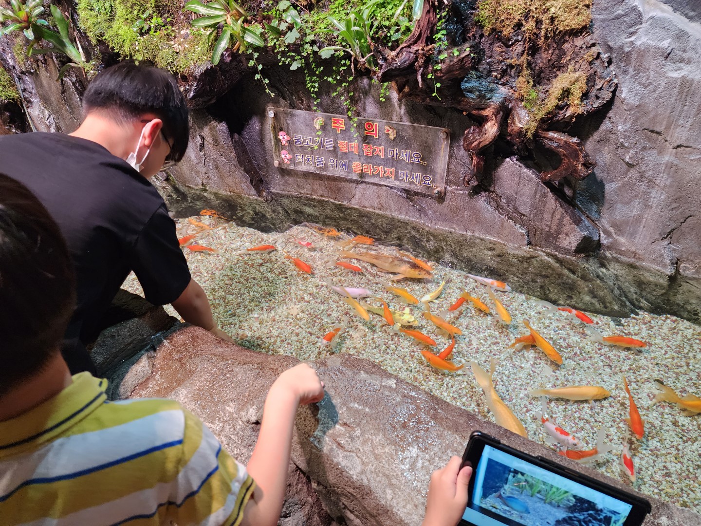 제발 손 넣지 말아라 하고 빌게 되는 소원 우물 같은 물고기와의 교감 장소.
