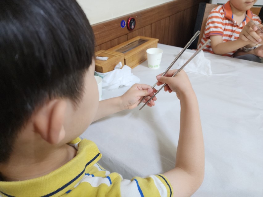 아이들과 젓가락 연습을 하며 음식을 기다립니다.
