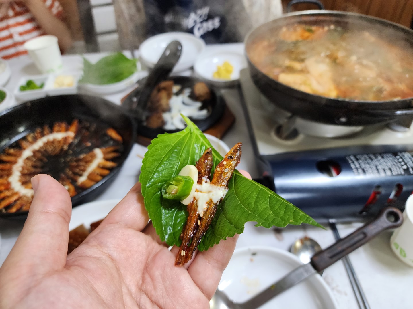 고추, 마늘, 깻잎쌈으로 먹어봅니다.