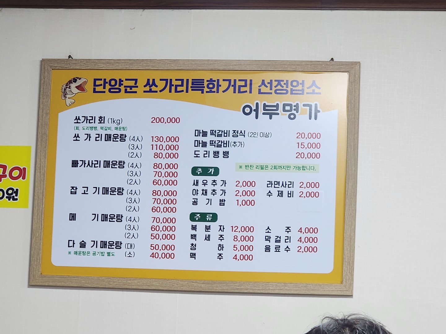 어차피 쏘가리 매운탕은 이 동네 아무 가게나 들어가도 다 팔아요.