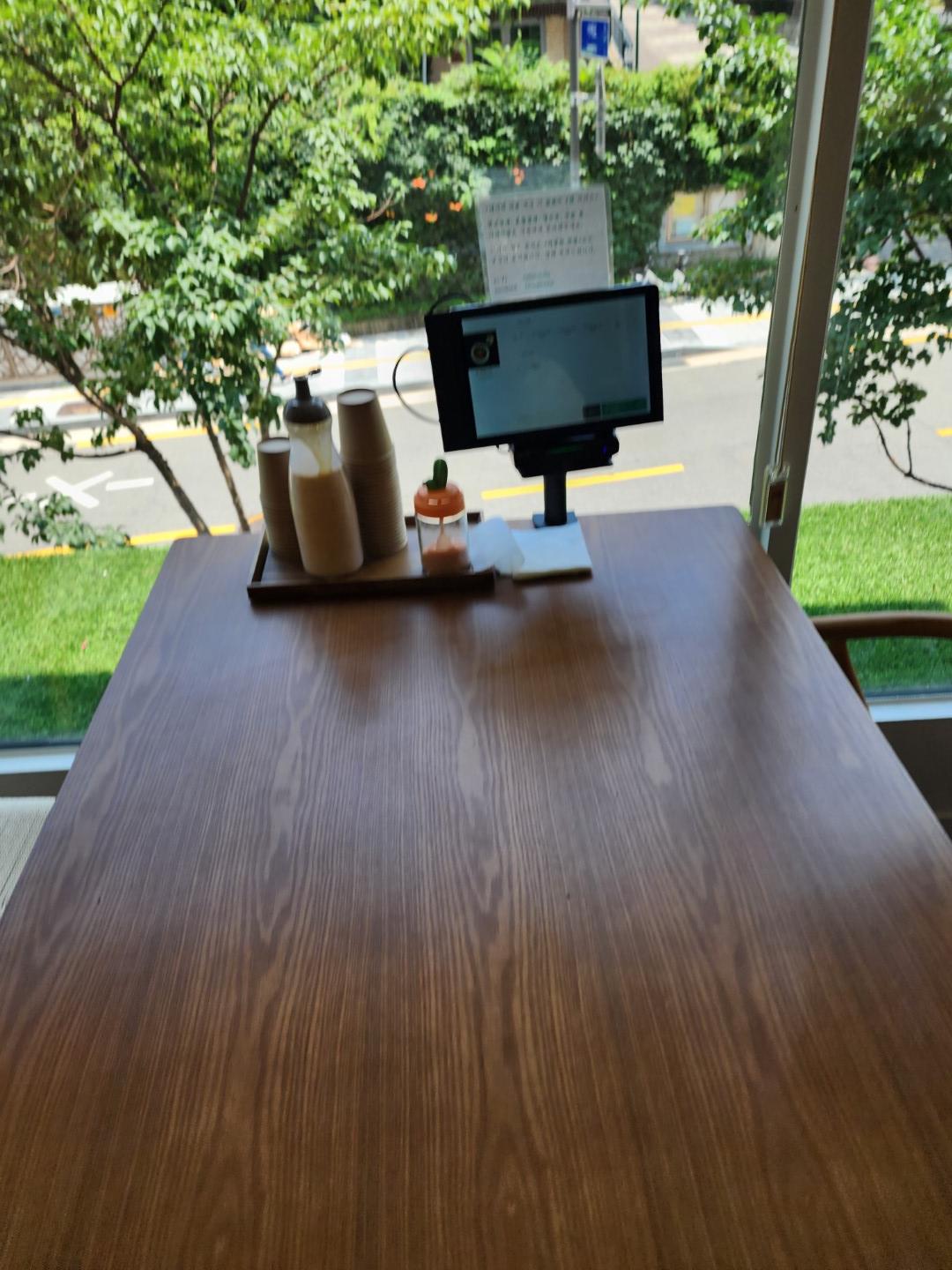 다만 끝에 앉으면 테이블에 달린 무인 주문기가 너무 멀어요.