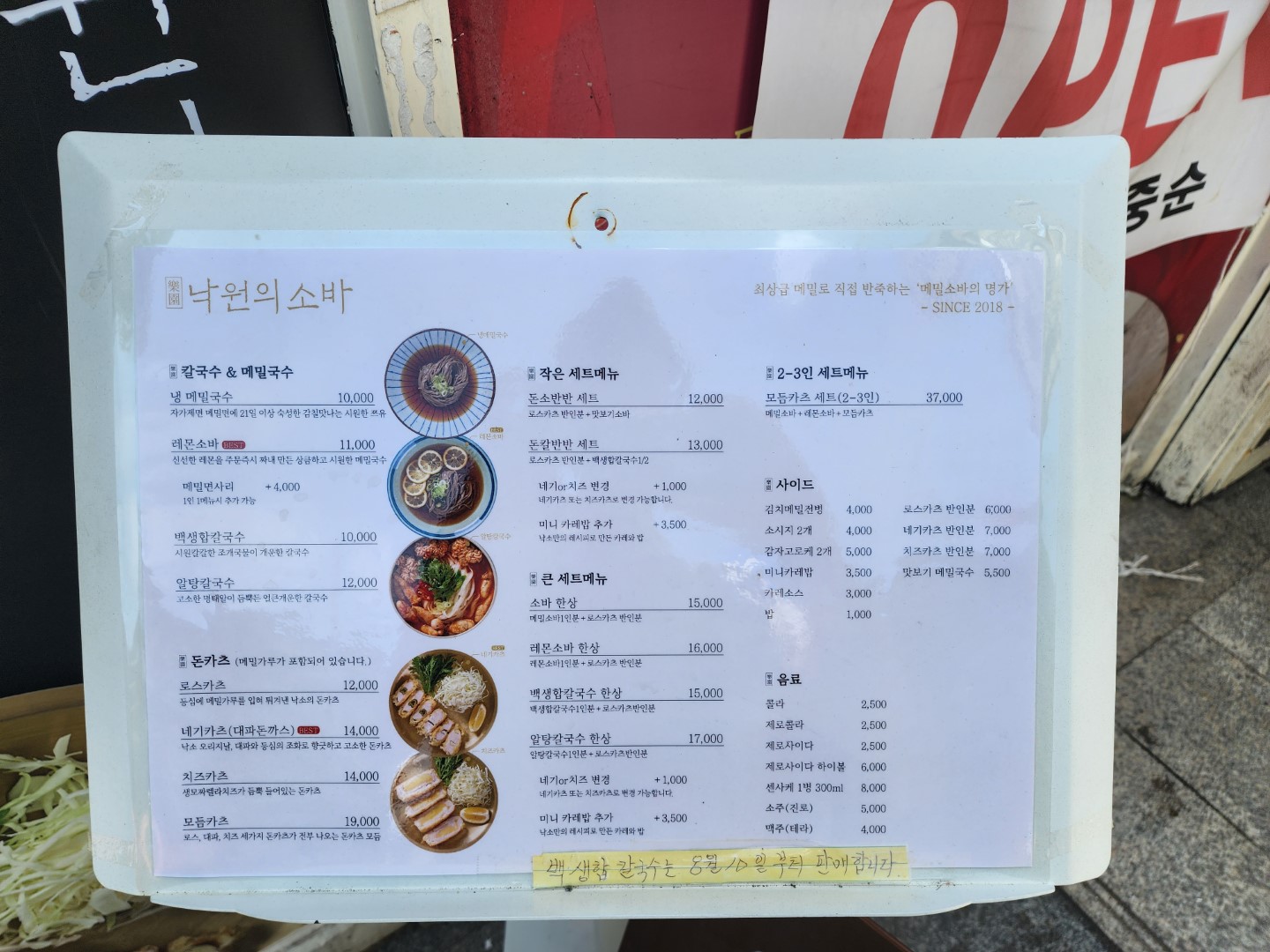 가게 입구에 메뉴판이 있습니다.