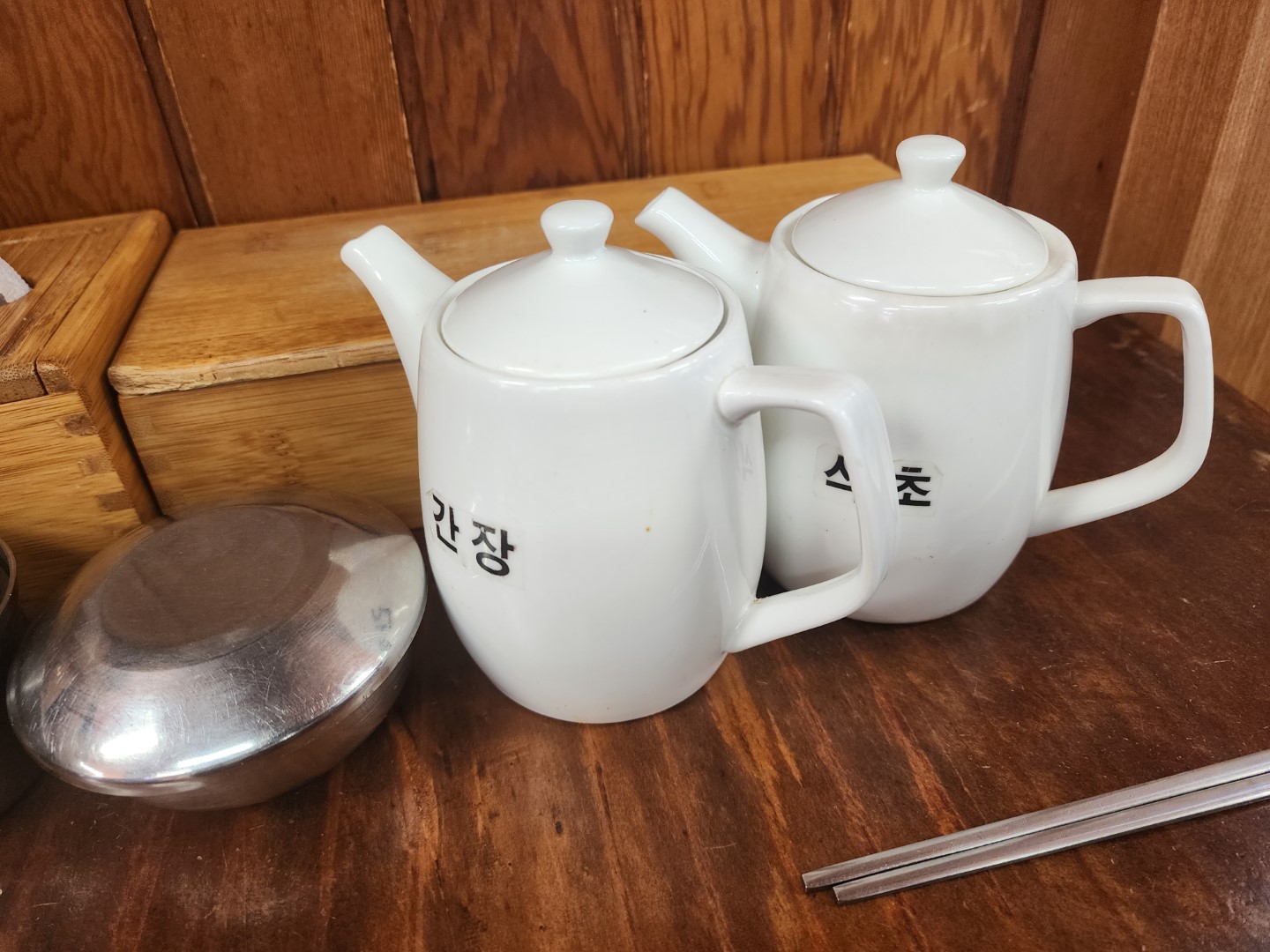 간장과 식초가 있습니다.