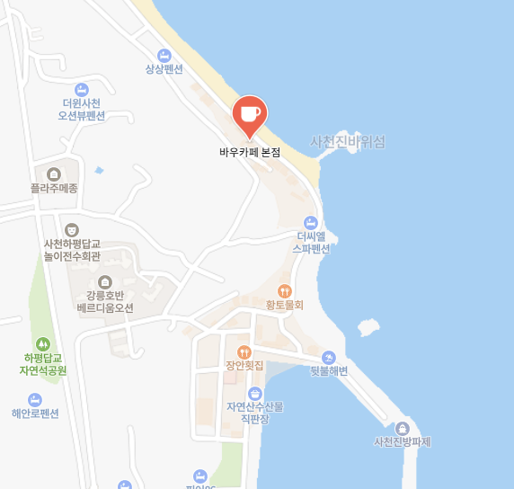 바우 카페 본점은 강릉시 사천진리에 있습니다.
