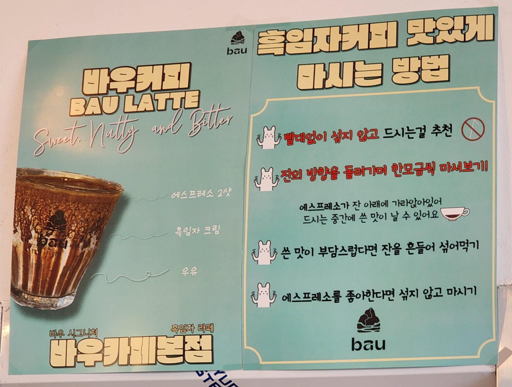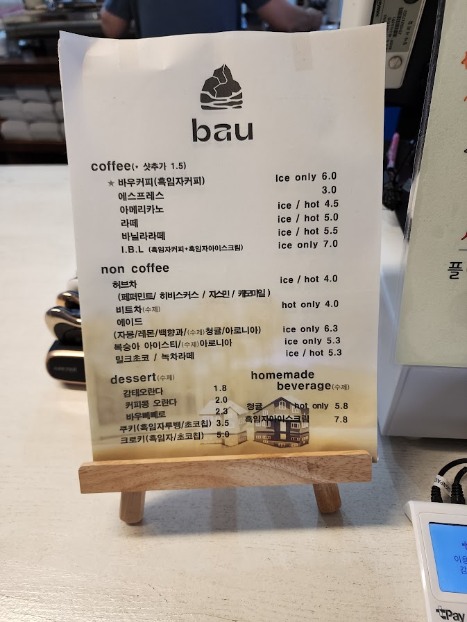 메뉴를 보며 뭘 먹을지 고민하는건 즐거운 일이지만 오늘은 바우 커피를 마셔야합니다.