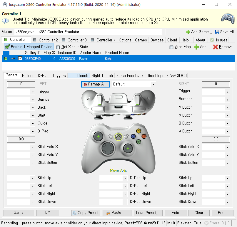 X360CE 앱은 최소화 해두면 좋다고 하네요.