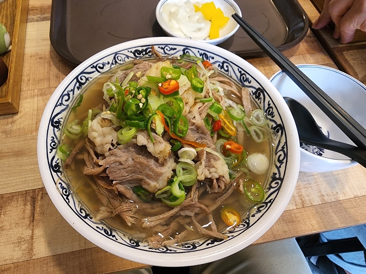 짧다면 짧고 길다면 긴 시간을 기다려서 나온 차돌양지 쌀국수.