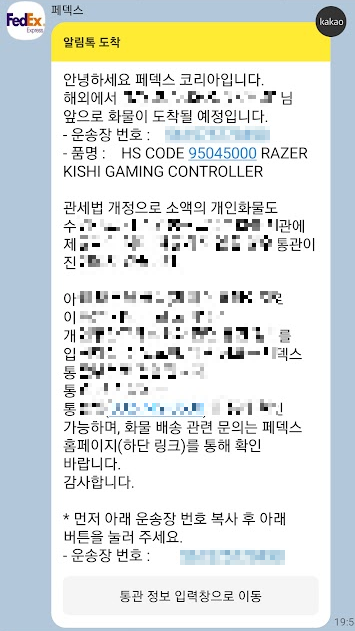 페덱스에서 통관 처리 관련 안내가 왔어요.
