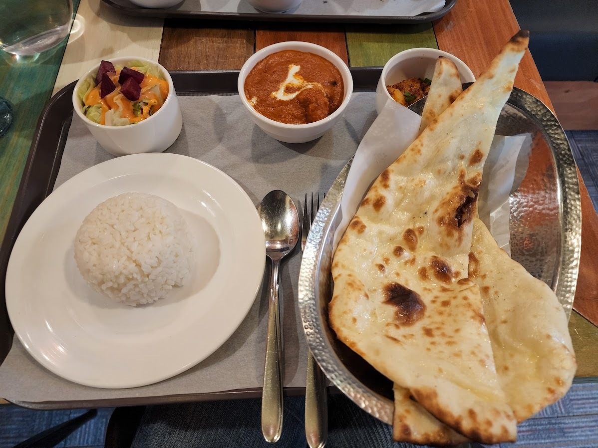 한국말이 어색한 종업원에게 버터 난 + 치킨버터 마살라 + 아이스 레몬티 조합으로 주문합니다.