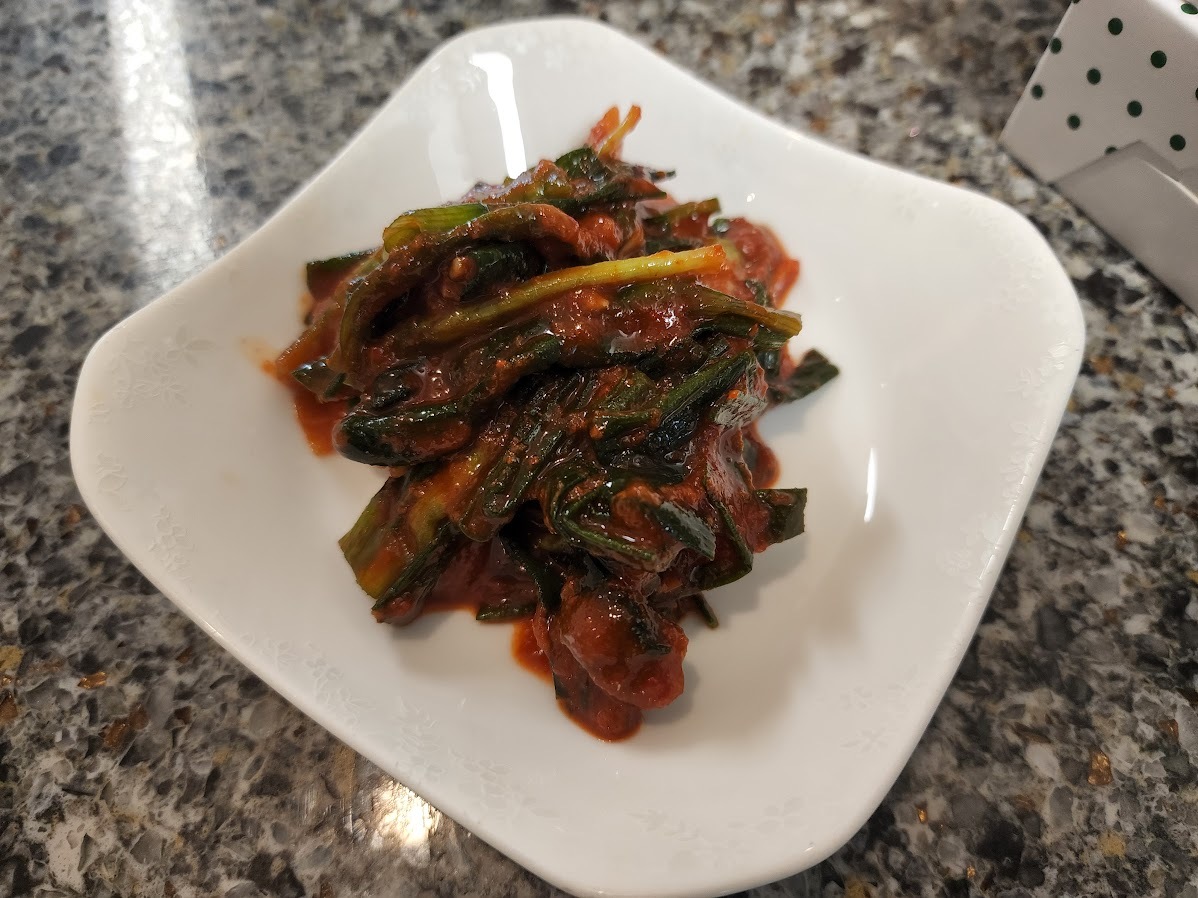 남는 시간에 파김치를 썰어 이쁘게 담아 봅니다.
